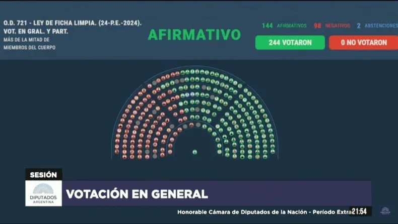 Con una mayoría absoluta de 144 votos, Diputados aprobó y giró al Senado el proyecto que activa la Ficha Limpia, que modifica las reglas de elegibilidad para los candidatos a cargos públicos y bloquearía a quienes tengan una condena confirmada en segunda instancia relacionada con delitos contra la administración pública -entre otros-, como es el caso de Cristina Kirchner.
