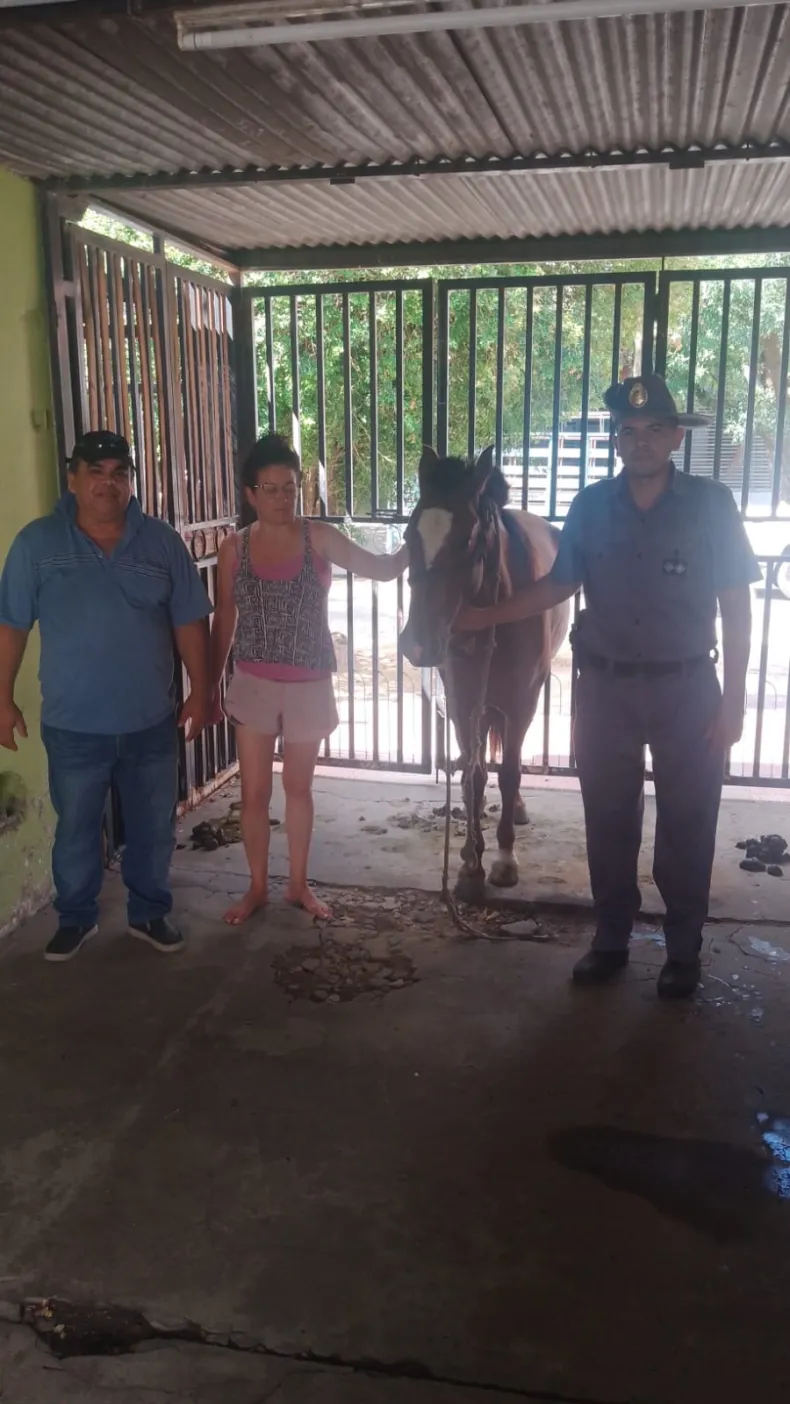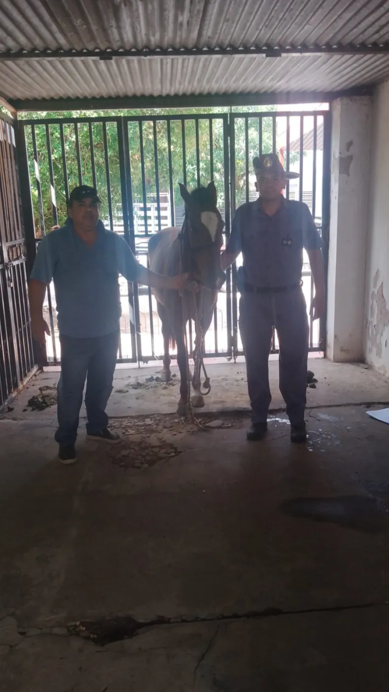 Una vez rescatada, la yegua fue trasladada a un lugar seguro bajo la custodia de la Policía Rural, quienes se encargaron de su resguardo y cuidado.
