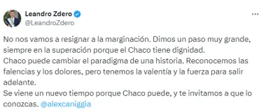 Leandro Zdero, no dejó pasar las declaraciones del mediático y defendió a su provincia: "No nos vamos a resignar a la marginación. Dimos un paso muy grande, siempre en la superación porque el Chaco tiene dignidad", afirmó el mandatario y remató: "Te invitamos a que lo conozcas".