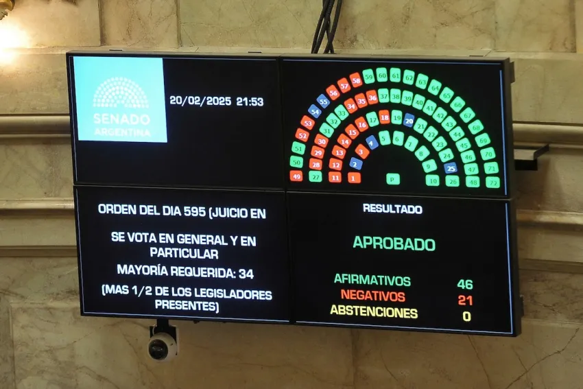 El pleno del Senado sancionó la ley que activa la implementación del juicio en ausencia y el Gobierno logró una nueva victoria dentro de las sesiones extraordinarias, que finalizan mañana. La iniciativa obtuvo, durante la noche de este jueves, 45 votos del oficialismo y la oposición dialoguista, mientras que el kirchnerismo volvió a fracturarse, entre un par de adhesiones y muchos rechazos.