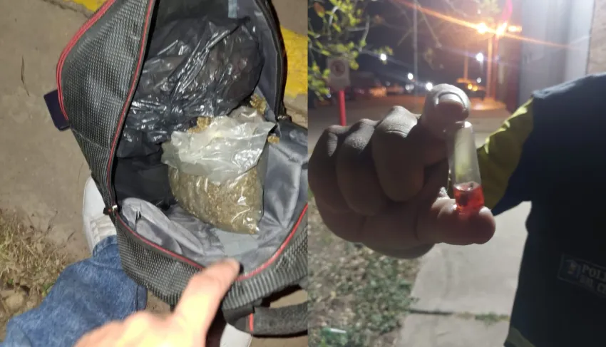Durante la requisa, y en presencia de testigos, se halló en el interior de la mochila dos bolsas transparentes con sustancia vegetal verde amarronada con aroma característico de marihuana. Tras las pruebas de campo, se confirmó que se trataba de marihuana con un peso total de 1.563 gramos. Asimismo, se secuestró un envoltorio de nylon negro con una sustancia blanquecina, que resultó ser cocaína con un peso de 1,5 gramos.