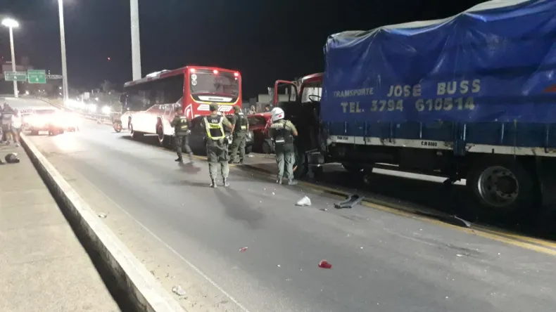 Un choque múltiple ocurrió en la provincia de Corrientes, a la altura de la Avenida 3 de Abril, kilómetro 0,5, en el carril descendente de la Ruta Nacional 12. Según informó la Policía Caminera, en el siniestro estuvieron involucrados un camión, un colectivo y dos automóviles, aunque afortunadamente no se registraron heridos.