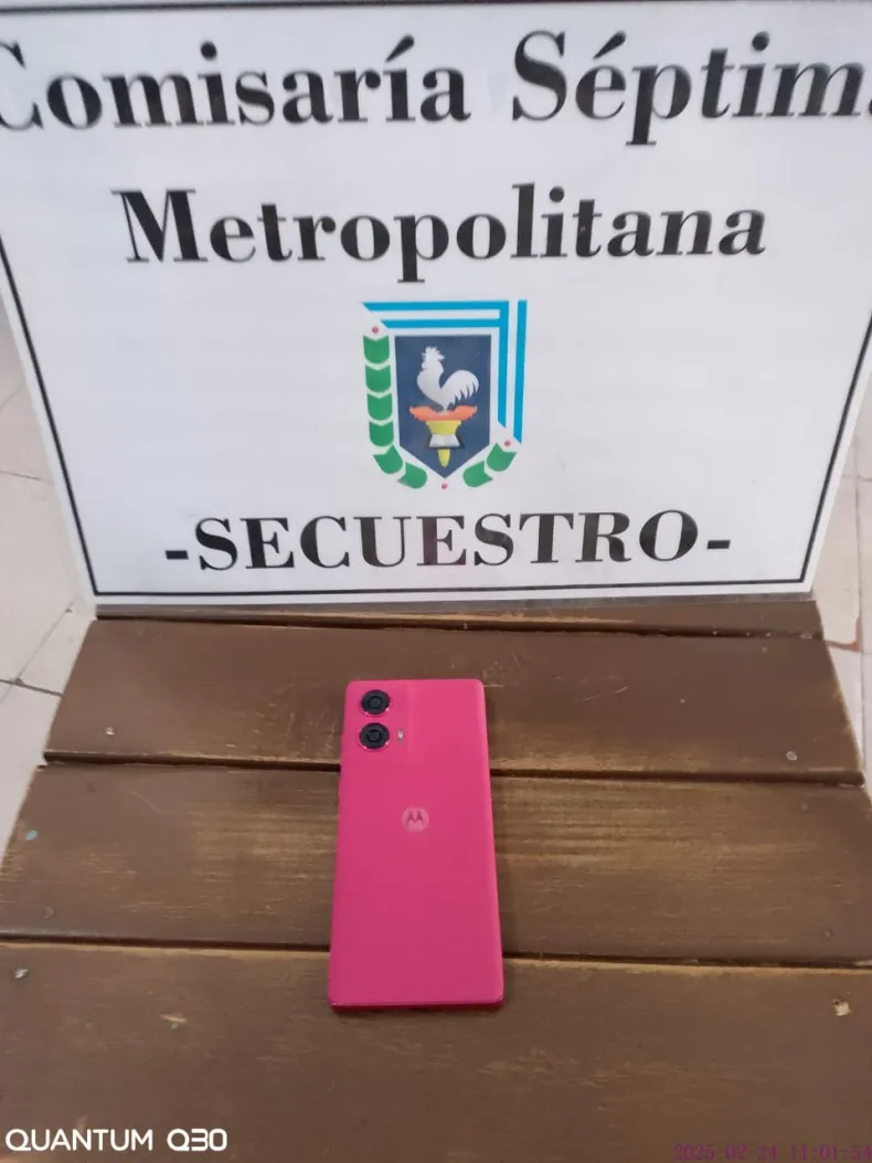 Cerca del mediodía, los efectivos de la Comisaría Séptima Metropolitana demoraron a un joven de 20 años que era buscado por el robo de un celular de una mujer de 50. El joven se movía en una Honda Wave, vehículo que fue incautado porque presuntamente habría cometido el delito con esa moto.