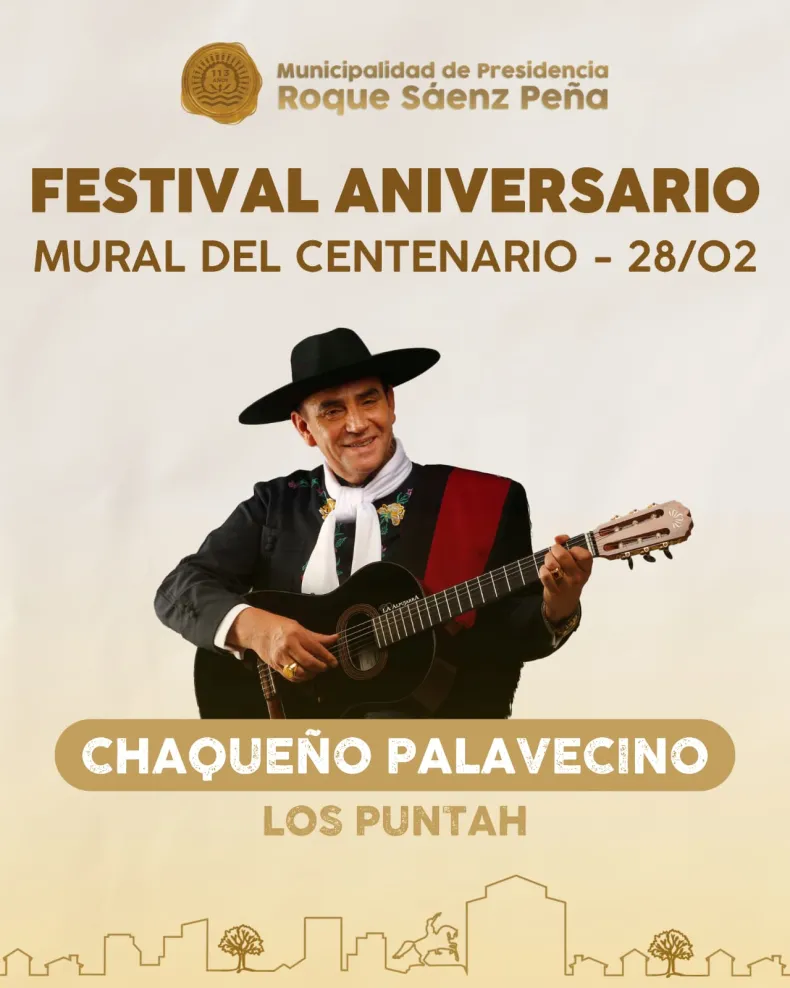 Sáenz Peña celebra su 113° aniversario con festival y actuación del Chaqueño Palavecino