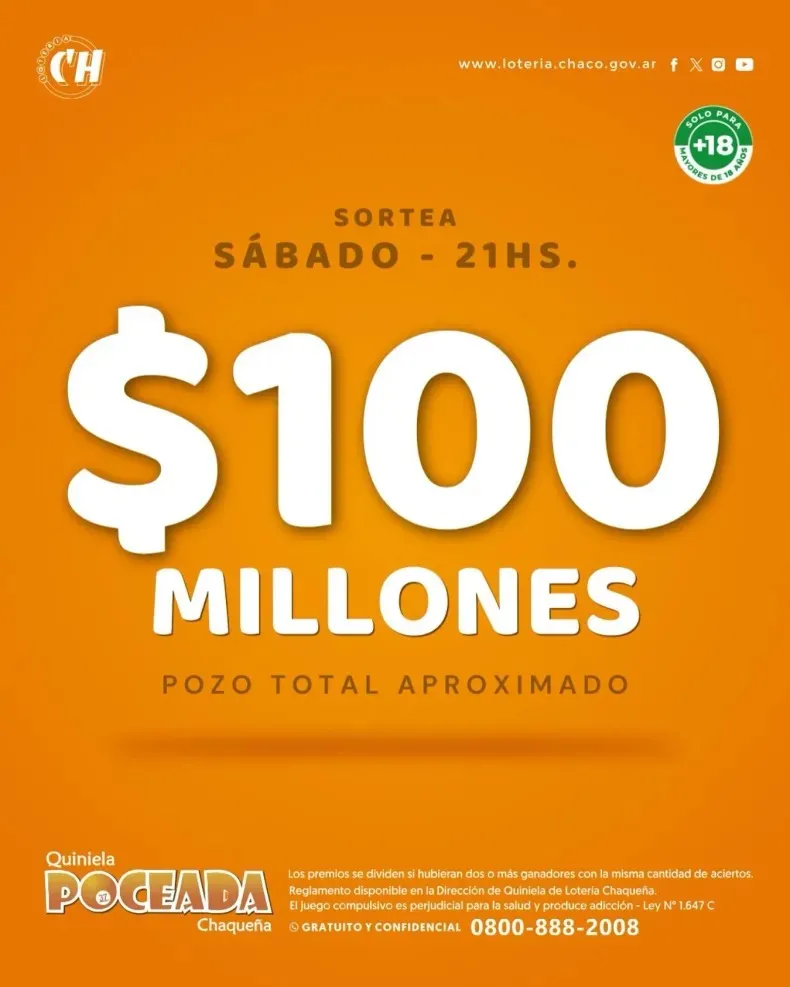 La Poceada Chaqueña quedó vacante y el pozo sube a $ 100 millones para este sábado