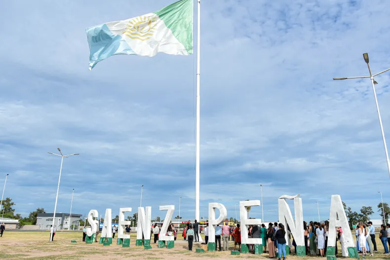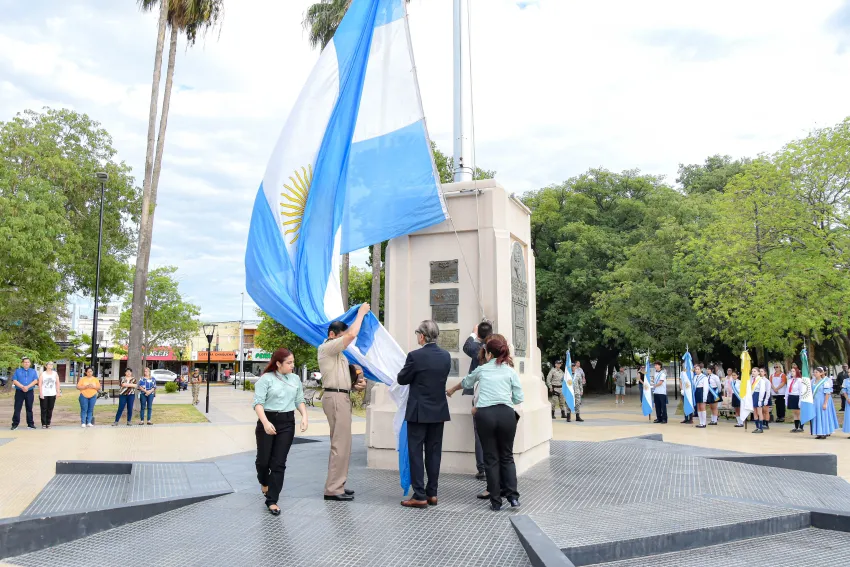 Posteriormente los presentes se dirigieron a la rotonda de acceso a la ciudad donde se izó la bandera de Presidencia Roque Sáenz Peña.