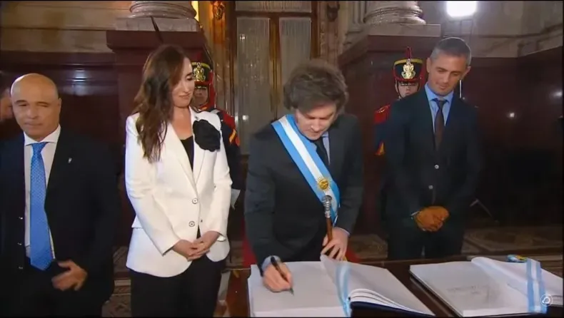 "La sociedad argentina es una de las más familiarizadas con la frustración política de la historia moderna", comenzó el jefe de Estado. Seguido, agregó: "Venimos a romper la calesita, quitarle la manija al sortijero y trazar un horizonte de progreso hacia adelante con cambios profundos que atacan la raíz de nuestros males. Por eso nos encomendamos a recuperar la racionalidad económica, achicar el estado, devolverle la libertad a la sociedad, reestablecer el imperio de la ley, y borrar los privilegios que la política acumuló a lo largo de los años".