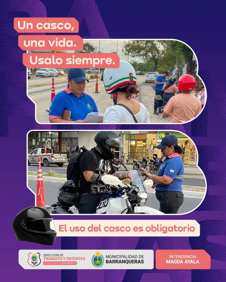 "Desde nuestra gestión trabajamos arduamente para contribuir a la formación de una Barranqueras más segura, pero esto también requiere del compromiso de toda la comunidad. Por eso, insistimos en la importancia de usar siempre el casco", expresaron desde el municipio.