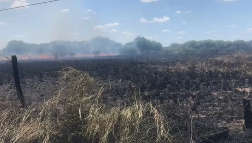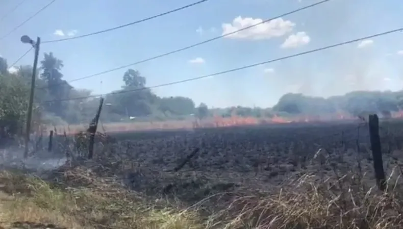 Varias dotaciones de Bomberos de la Policía y Bomberos Voluntarios trabajan intensamente en un campo a las afueras de la ciudad de Sáenz Peña, en la zona norte, para sofocar un gran incendio de pastizales que se originó en la calle 33, camino al aeropuerto. El fuego se propagó rápidamente debido a la combinación del viento y la prolongada sequía.