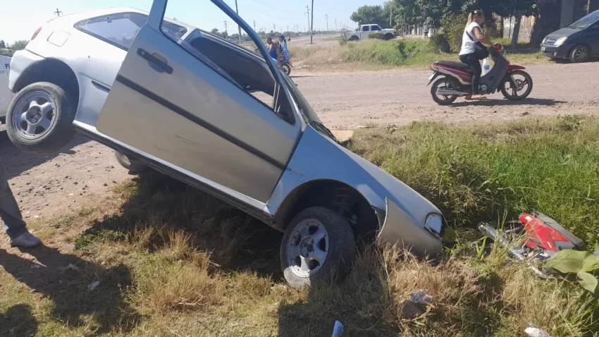 Por otro lado, una motocicleta Corven Energy roja, en la que viajaban un joven de 17 años y un menor de 10, terminó cayendo a una zanja producto del impacto. Ambos sufrieron lesiones y fueron trasladados al Hospital Perrando en diferentes ambulancias.