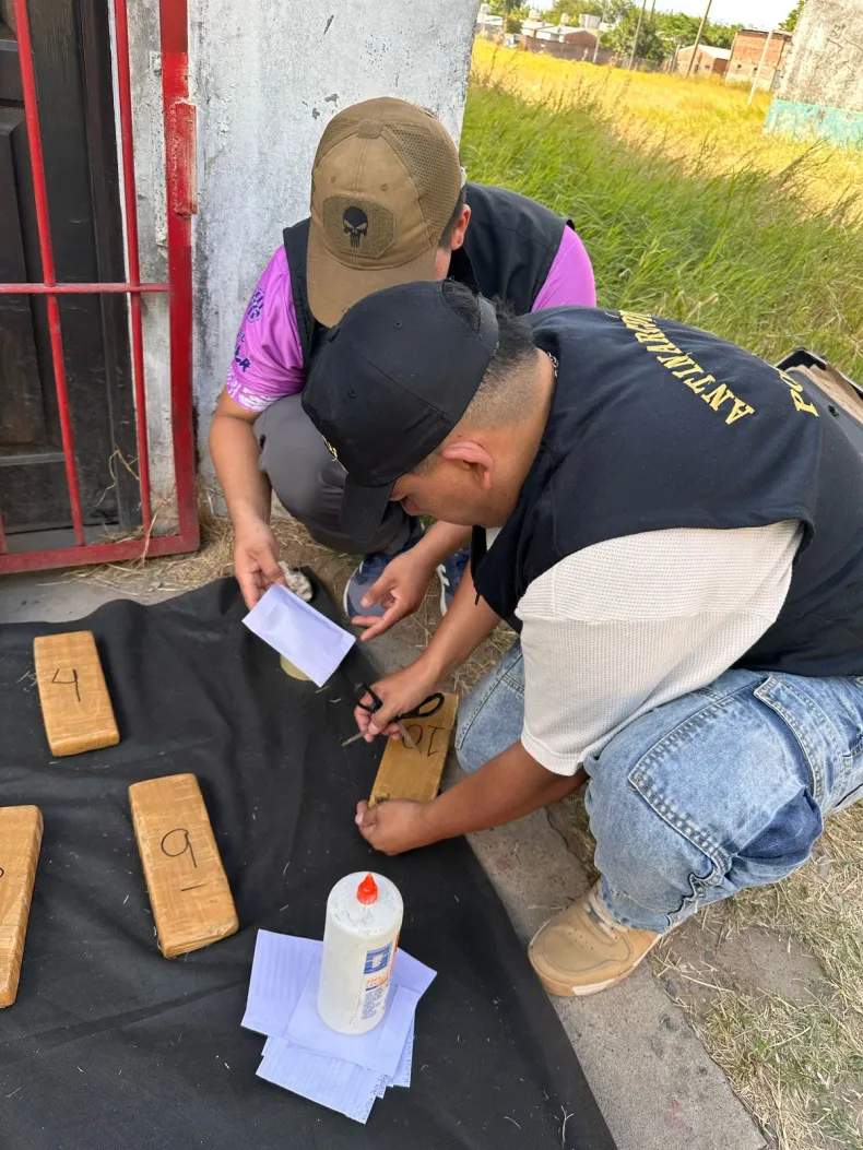 Uno de los sospechosos logró escapar, pero el otro fue detenido con una carretilla que contenía una bolsa de arpillera. Al revisarla, se hallaron 15 paquetes envueltos en cinta beige.