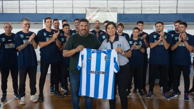 En el Club Acción junto a la Secretaría de Desarrollo Humano y Deportes, el intendente Bruno Cipolini recibió a la selección argentina masculina de Cestoball, Campeón del Mundo en esa disciplina.