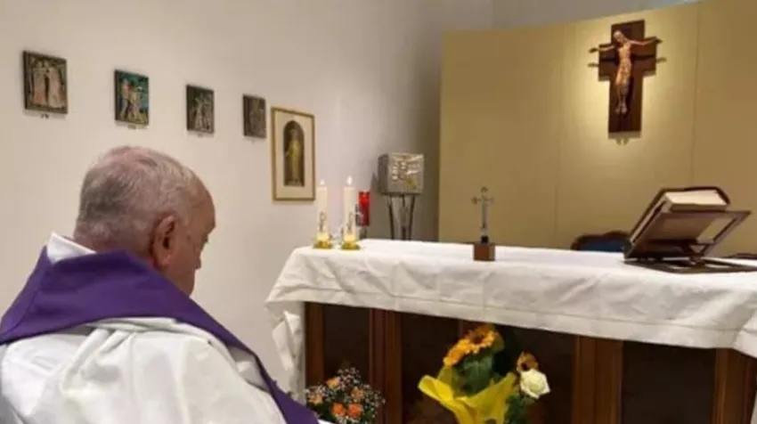 En la oficina de prensa del Vaticano publicaron una foto del papa Francisco, la primera desde que fue ingresado en el Hospital Gemelli el 14 de febrero. En la misma se puede ver al Santo Padre en una silla de ruedas, en la capilla del hospital, junto a su habitación en el décimo piso.