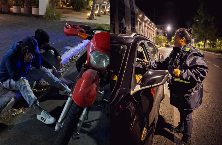 Durante un operativo en la madrugada del sábado en el Parque de la Democracia, un motociclista intentó escapar arrojando un envase de cerveza a un funcionario municipal. Fue interceptado a pocos metros por personal motorizado y detenido junto a su acompañante. Tras ser identificado, se constató que se encontraba en libertad condicional por un caso de homicidio. Ambos fueron trasladados a la comisaría.