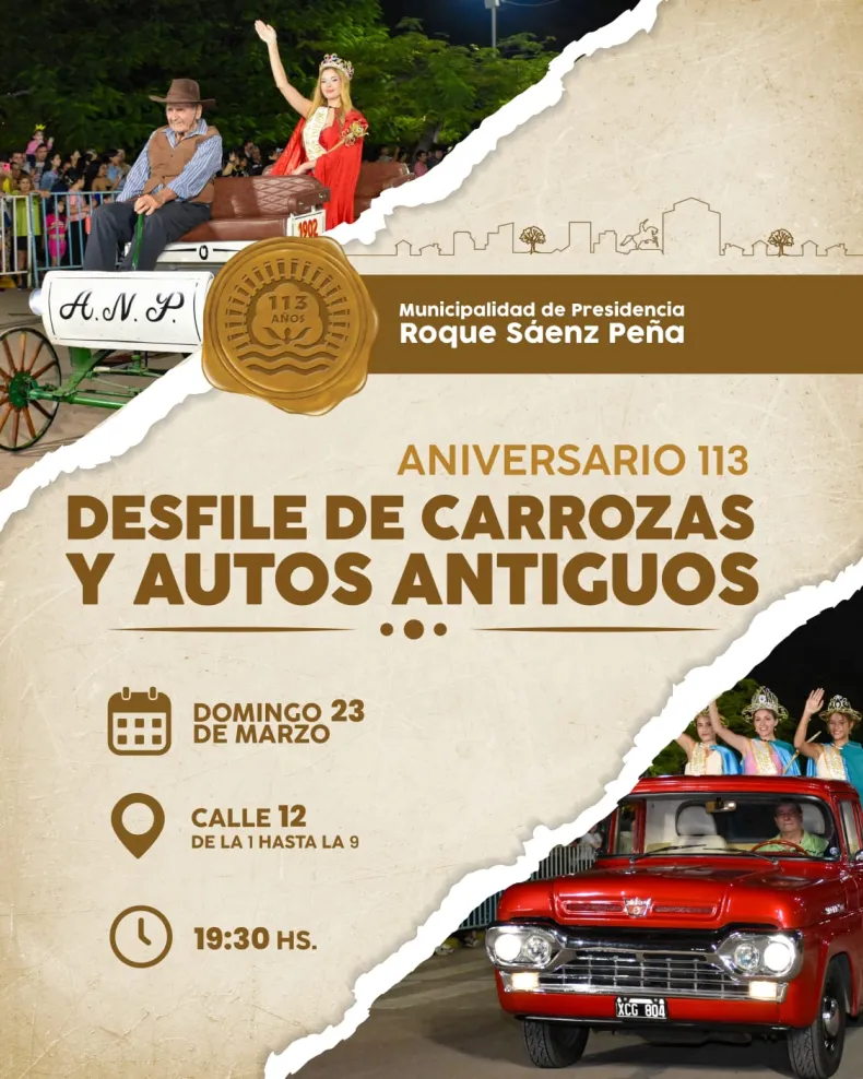 Como ya es habitual todos los años, en el marco del aniversario de la ciudad de Sáenz Peña este fin de semana se realizará el tradicional desfile de carrozas y autos antiguos en la calle 12.
