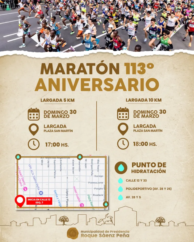 Se debe remarcar que la maratón de Presidencia Roque Sáenz Peña, año a año va ganando popularidad por lo que es un evento importante con el que se cerrará el mes del 113° aniversario.