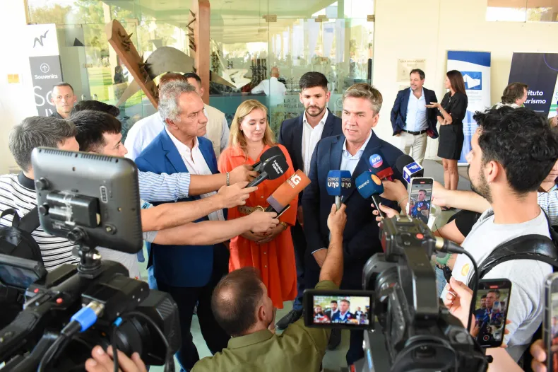 Junto a la presidente del Instituto de Turismo, Verónica Mazzaroli, el Gobernador destacó la visita de autoridades nacionales, porque "queremos desarrollar el turismo, esta industria sin chimenea" y en esta línea, remarcó el trabajo que se realiza para potenciarlo porque "todas las expresiones de turismo, ya sea local, religioso, aventura, naturaleza, las vamos a acompañar porque estamos convencidos de que generan puestos de trabajo, nos ayuda a potenciar y transitar la visión de otra provincia y tomar decisiones y dar vuelta la página".