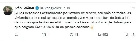 "Estos eran los gerentes de la pobreza de Capitanich", expresó el diputado en redes sociales, vinculando el caso con la anterior gestión provincial.