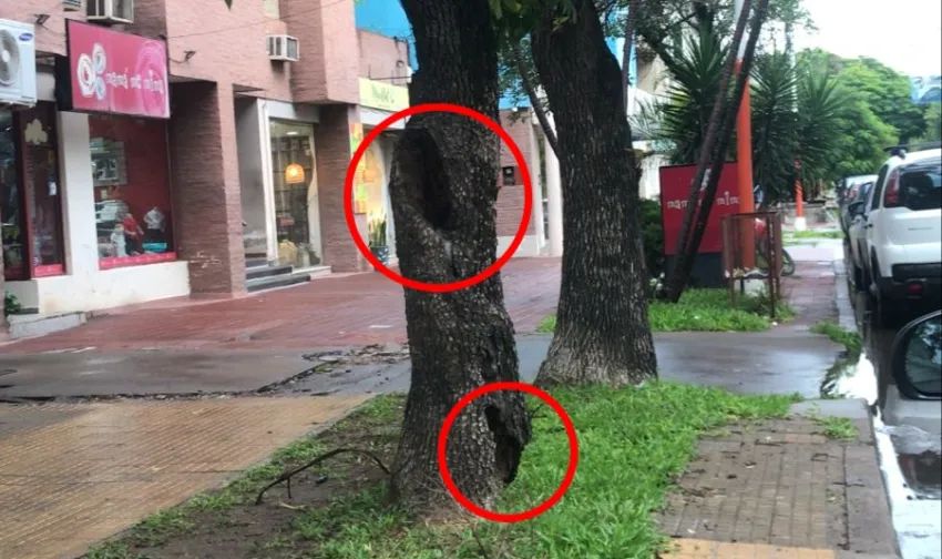 Una lectora de Diario TAG advierte por el estado de un árbol ubicado en la calle Colón al 25, a pocos metros de la avenida 9 de Julio, una de las principales arterias de la ciudad. Según el descargo de la mujer, debido al estado del tronco, muchas de sus ramas caen directamente a la calle, lo que genera una situación de peligro para las personas que circulan por la zona.