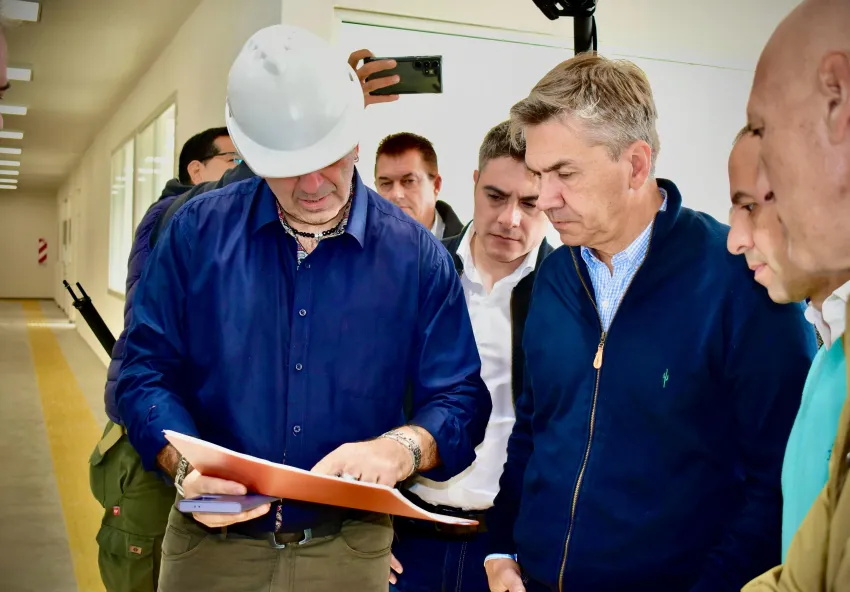 El mandatario provincial estuvo acompañado por el Subsecretario de Legal y Técnica, Julio Ferro, el jefe comunal, Diego Bernachea y el ministro de Infraestructura, Hugo Domínguez en la obra reactivada de la nueva terminal de ómnibus.