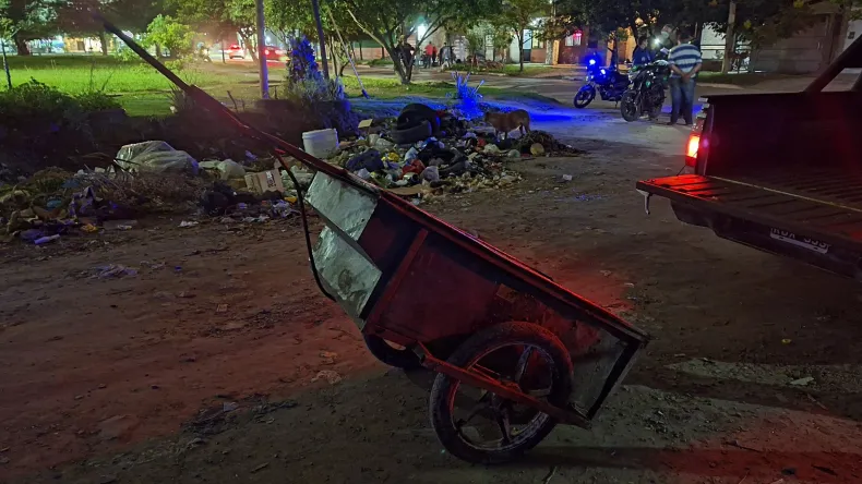 El hecho se registró en la intersección de las calles Gabriel Carrasco y Seitor, donde el infractor utilizaba un carro de tracción a sangre humana para transportar y desechar los residuos de manera ilegal.
