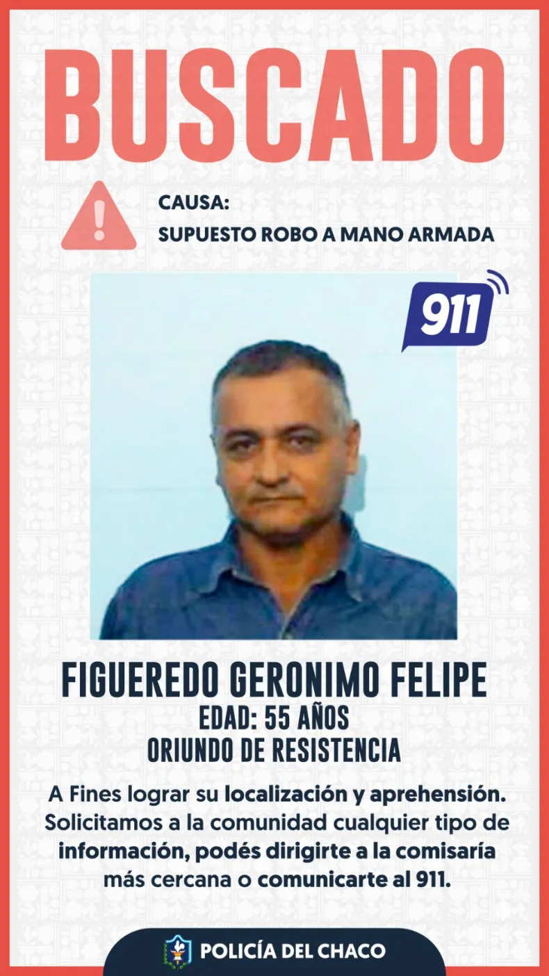 Buscan intensamente a Gerónimo Figueredo para su detención por robo a mano armada