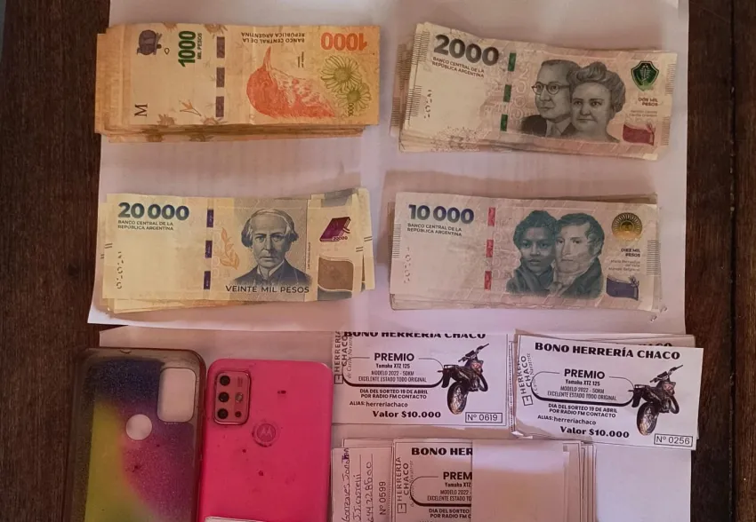 Bajo disposición de la fiscal del Equipo Fiscal N° 2 de Juan José Castelli, y con orden judicial del Juzgado de Garantías en turno, se procedió al allanamiento. Durante el procedimiento se secuestraron 22 talonarios de rifas, $300.000 en efectivo, un teléfono celular marca Motorola color rosa, y una motocicleta Yamaha modelo XTZ de color negra. Todos estos elementos estarían directamente relacionados con la actividad ilegal investigada.