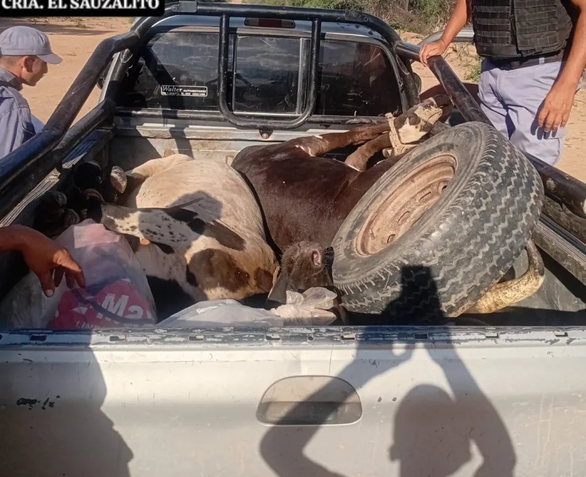El Sauzalito: secuestran dos vacunos que estaban atados y 15 kilos de vacuno faenado