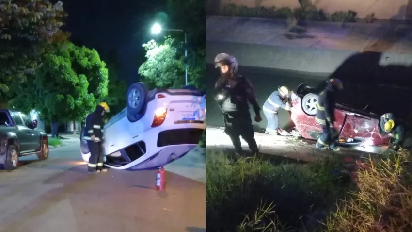 Entre las 1 y la 1:30 de esta madrugada, se dieron dos accidentes, con la particularidad de que ambos fueron vuelcos, en los que no se lamentaron victimas de gravedad.