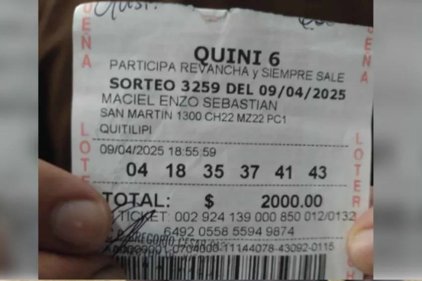 El ganador había registrado su jugada en la Agencia 704, cuyo titular es Enzo Sebastián Maciel, ubicada en San Martín 1300 de Quitilipi. Sus números de la suerte fueron el 04, 18, 35, 37, 41 y 43.