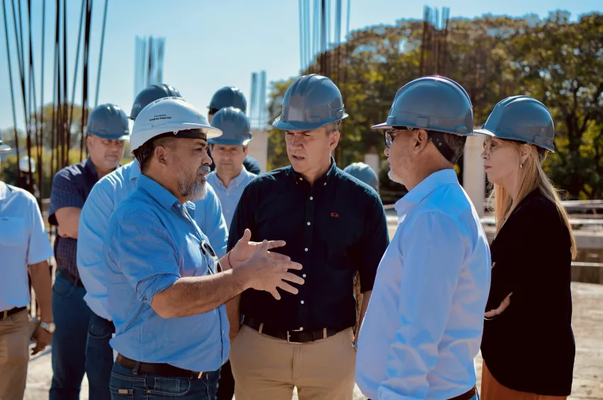 El gobernador Leandro Zdero, acompañado por la titular del Instituto de Seguridad Social, Seguros y Préstamos (INSSSEP), Irene Dumrauf y por el presidente del Instituto Provincial de Desarrollo Urbano y Viviendas (IPDUV), Fernando Berecoechea, anunció el reinicio de la obra del nuevo edificio del INSSSEP, en el terreno del ex Hospital Pediátrico, ubicado en calles Julio C. Acosta y Arturo Illia, de Resistencia.