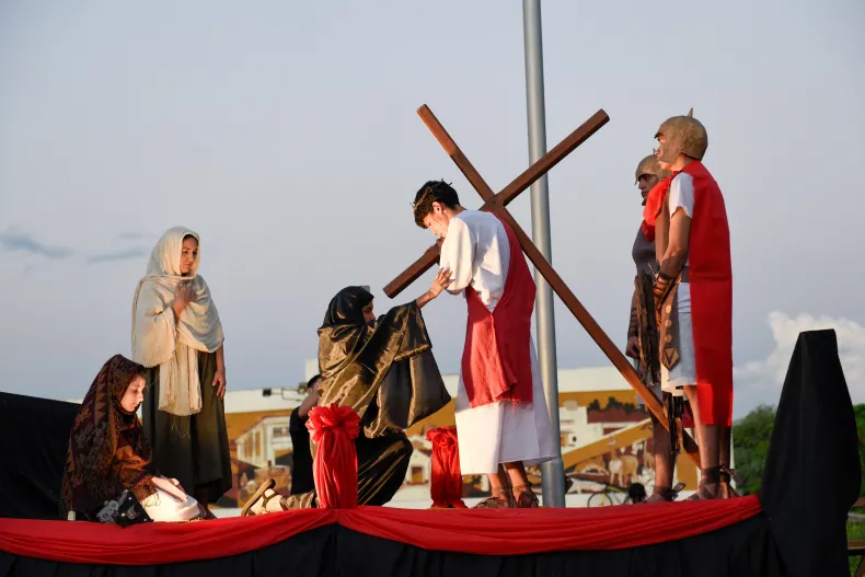 Durante su recorrido el Vía Crucis tuvo varias paradas donde se representaban cada uno de los momentos que vivió Jesucristo hasta ser crucificado.