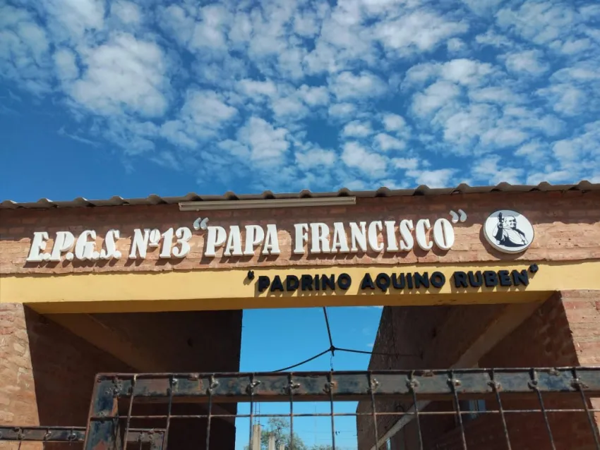 Así el 4 de abril del 2017, nació la E.P.G.S. N°13 "Papa Francisco", llevando el nombre de la máxima autoridad de la iglesia católica, pero sin ser una escuela religiosa, en primer lugar, funcionaba solo la primaria, luego se creó la escuela de formación profesional, donde se enseñan oficios como panadería, construcción, manicura, etcétera y actualmente funciona también el nivel inicial con salitas de 4 y 5 años y el nivel secundario para que jóvenes y adultos puedan culminar sus estudios.