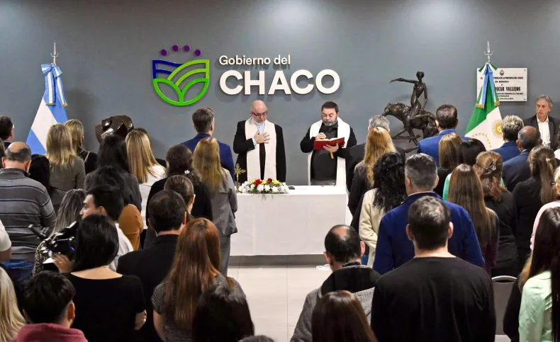 El gobernador Leandro Zdero encabezó, esta mañana, la misa en memoria del Papa Francisco que se realizó en el hall de Casa de Gobierno. Junto a la vicegobernadora Silvana Schneider, al arzobispo de Resistencia monseñor Ramón Alfredo Dus, y funcionarios provinciales hizo entrega de un presente floral al solideo del Papa.