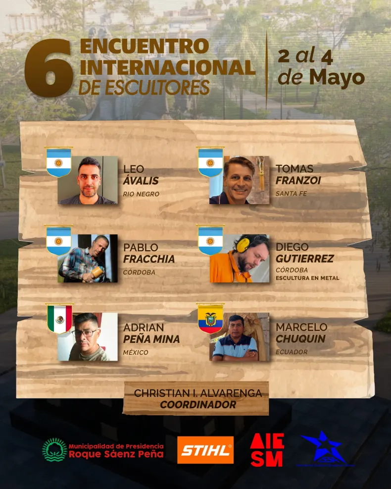 Del 2 al 4 de mayo, la plaza San Martín de Sáenz Peña será escenario del 6° Encuentro Internacional de Escultores, un evento que año a año crece en convocatoria y proyección internacional. En esta edición, participarán 11 escultores provenientes de ocho países, quienes trabajarán en vivo y a cielo abierto.
