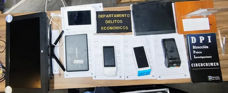 entre lo secuestrado figuran una camioneta Toyota Hilux, una Chevrolet S10, $300.100 en efectivo, 1.645.000 guaraníes, 44 tarjetas bancarias y wallet, cinco dispositivos POS, dos computadoras, celulares, tablets, un disco rígido, una consola PlayStation 5 y una placa con código QR. También se recolectó documentación variada para su análisis.