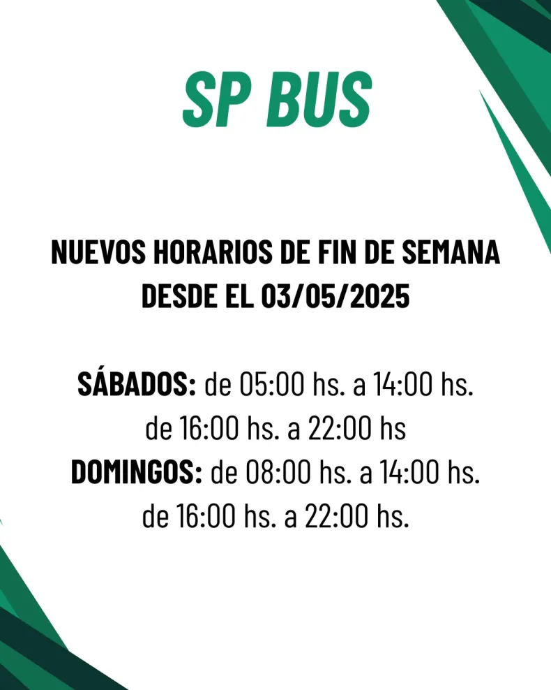 Además, a partir del sábado 3 de mayo habrá nuevo horario durante el fin de semana, todos los ramales trabajarán los días sábados de 5 a 14 y de 16 a 22 horas y los domingos de 8 a 14 y de 16 a 22 horas.