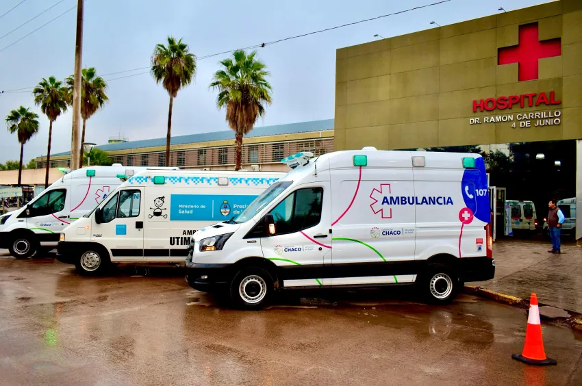 Durante el acto también se entregaron dos ambulancias, una equipada como unidad de terapia intensiva para Sáenz Peña y otra para Avia Terai, junto con monitores multiparamétricos y un ecógrafo portátil destinados a Neonatología y Pediatría.