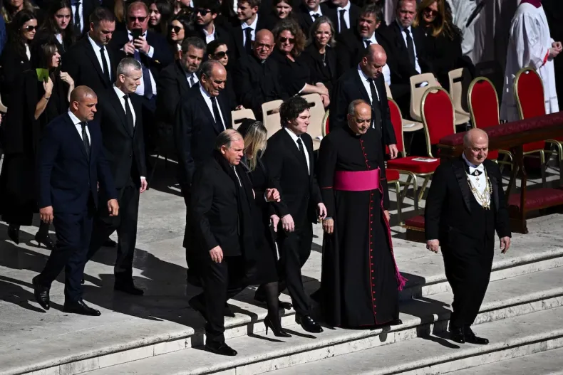 Entre los asistentes al funeral hubo decenas de líderes internacionales: en las primeras filas destacaban Trump, Emmanuel Macron, Zelensky, los reyes de España, Felipe VI y Letizia, que encabezaban la delegación española, además de Javier Milei, el presidente de Argentina, junto a la delegación italiana liderada por Sergio Mattarella y Giorgia Meloni.