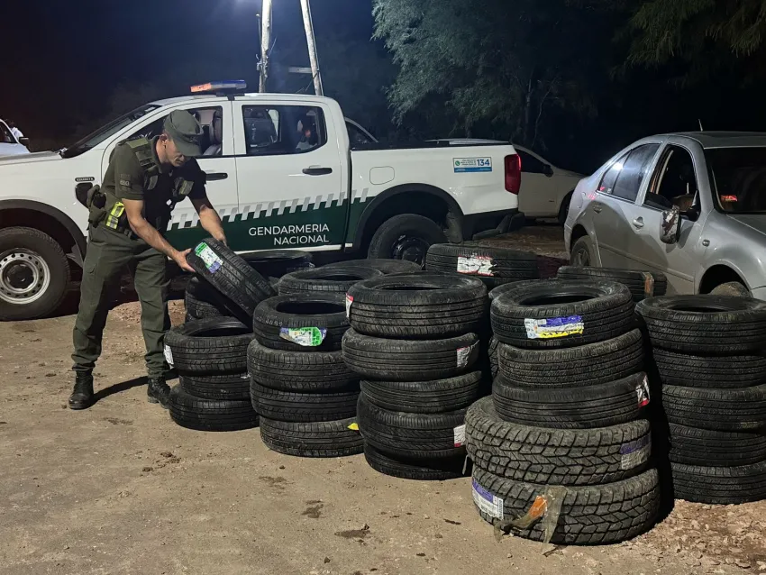 Ante esta situación, se solicitó apoyo a los efectivos de la Policía del Chaco. Así se realizó un trabajo conjunto, lograron interceptar a los involucrados en un campo privado a ocho kilómetros del lugar del incidente. Durante la requisa, se encontraron ciento diez cubiertas de origen extranjero.