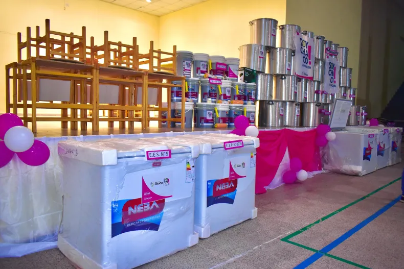 Cabe destacar que en esta oportunidad las autoridades provinciales también entregaron latas de pinturas y elementos de iluminación a instituciones educativas que cumplen 50 y 100 años de vida. Además, entregaron cocina, kits de cocina a instituciones educativas de las regiones educativas 8 A y B. Asimismo, hicieron entrega de una resolución del Ministerio de Capital Humano de la Provincia que otorga el refrigerio escolar a 415 estudiantes de la Escuela de Educación Secundaria Nº 5 "Domingo Faustino Sarmiento", atendiendo la solicitud de la institución.