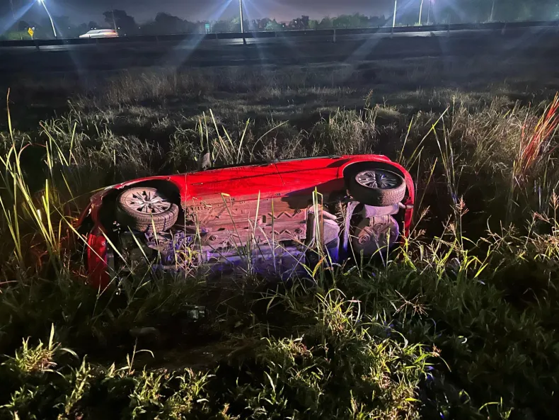 El tercer incidente ocurrió minutos antes, a las 4:20, sobre la colectora de la Ruta 16, a la altura del kilómetro 15. Un Volkswagen Gol rojo terminó dentro de un canal tras despistarse. El conductor, de 59 años, manifestó haber perdido el control del rodado.
