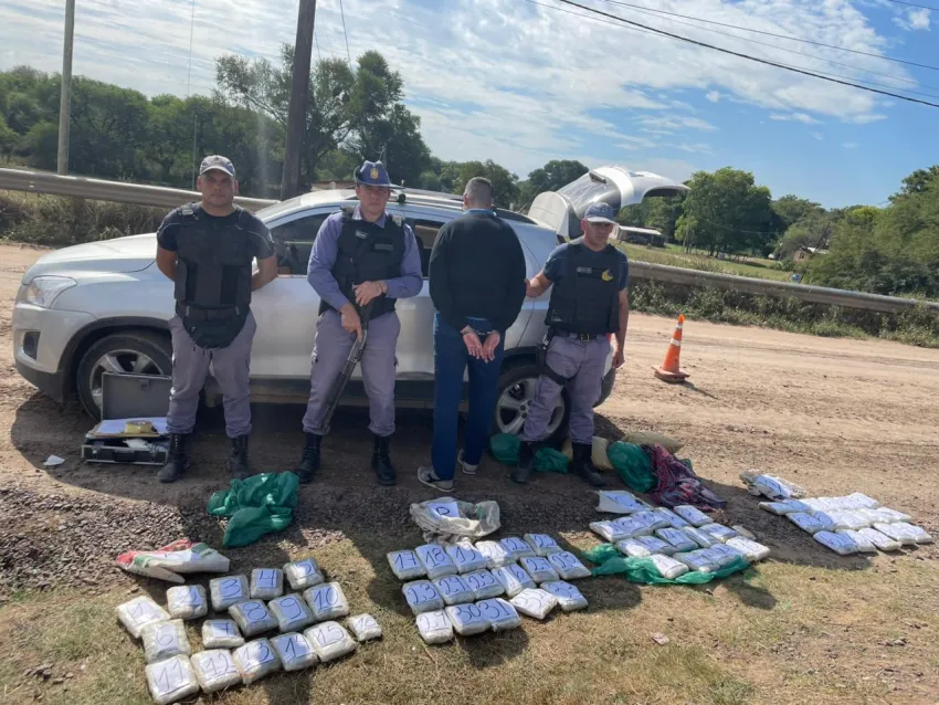 El automovilista fue identificado como J.F.A., de 42 años, domiciliado en el barrio Paikin de Resistencia. Dentro de las bolsas se hallaron 65 envoltorios rectangulares de sustancia vegetal prensada. Inmediatamente se solicitó la intervención del Departamento de Drogas Peligrosas de la Policía del Chaco.