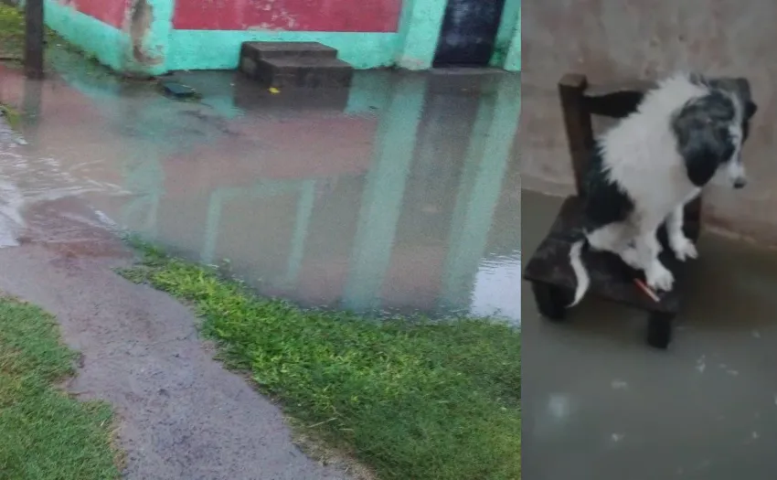 En los videos enviados a este medio se puede ver un perro subido a una silla para evitar el agua, evidencia de que "todo el patio está inundado".