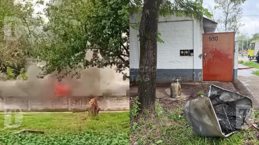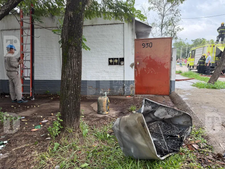 Testigos en el lugar relataron que "afuera del condominio puede verse la garrafa y la cocina, totalmente destruidas, que fueron retiradas del interior de la vivienda incendiada".