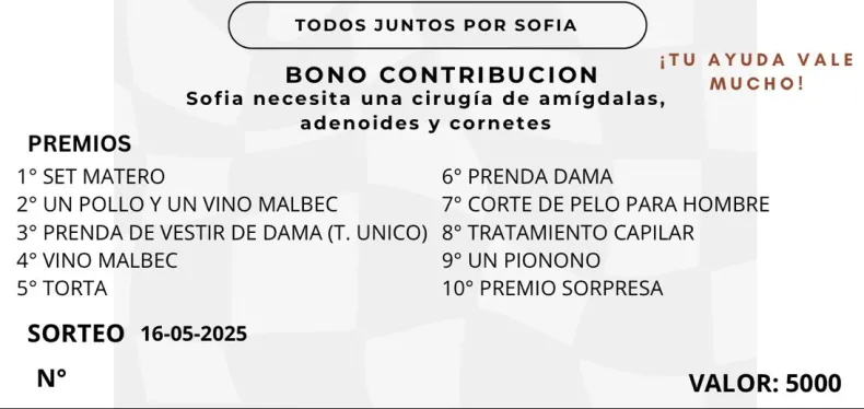 "La operación fue postergada antes de la pandemia y ahora cuesta $900.000. Tiene fecha para el 14 de mayo en el Sanatorio Parque", explicó Vanesa, quien organiza una venta de hamburguesas y una rifa para cubrir los gastos.