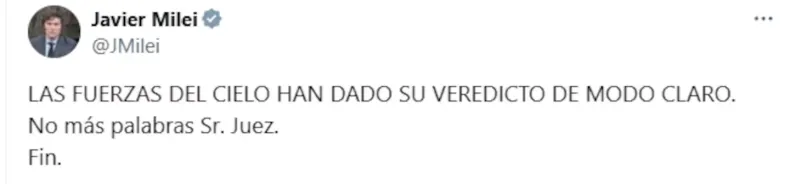 El posteo fue cerrado con la frase "No más palabras Sr. Juez. Fin". El papa León XIV es el estadounidense Robert Prevost, recientemente electo como nuevo pontífice.