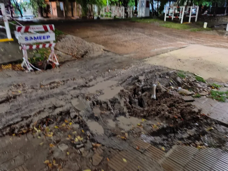 Vecinos de la calle Santa María de Oro al 500, en Resistencia, expresaron su malestar por la falta de reparación de la vereda y la calzada tras los trabajos cloacales realizados por Sameep semanas atrás.