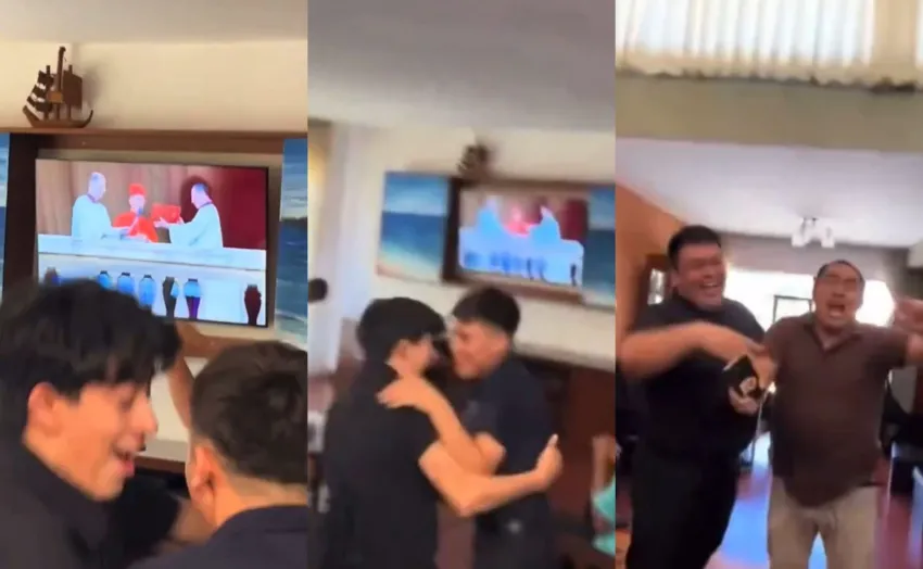 Los integrantes del Seminario Mayor la Diócesis de Chiclayo reaccionaron con abrazos, gritos y saltos de emoción al escuchar el nombre de su obispo como nuevo Papa.
