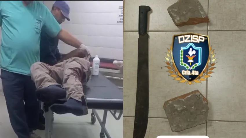 El agresor fue trasladado de urgencia al Hospital "4 de Junio" para recibir atención médica. En el lugar de los hechos, se secuestraron dos trozos de ladrillo, cartuchos de postas de goma y el machete utilizado en el ataque, que tenía una hoja de unos 50 cm y un mango plástico negro.